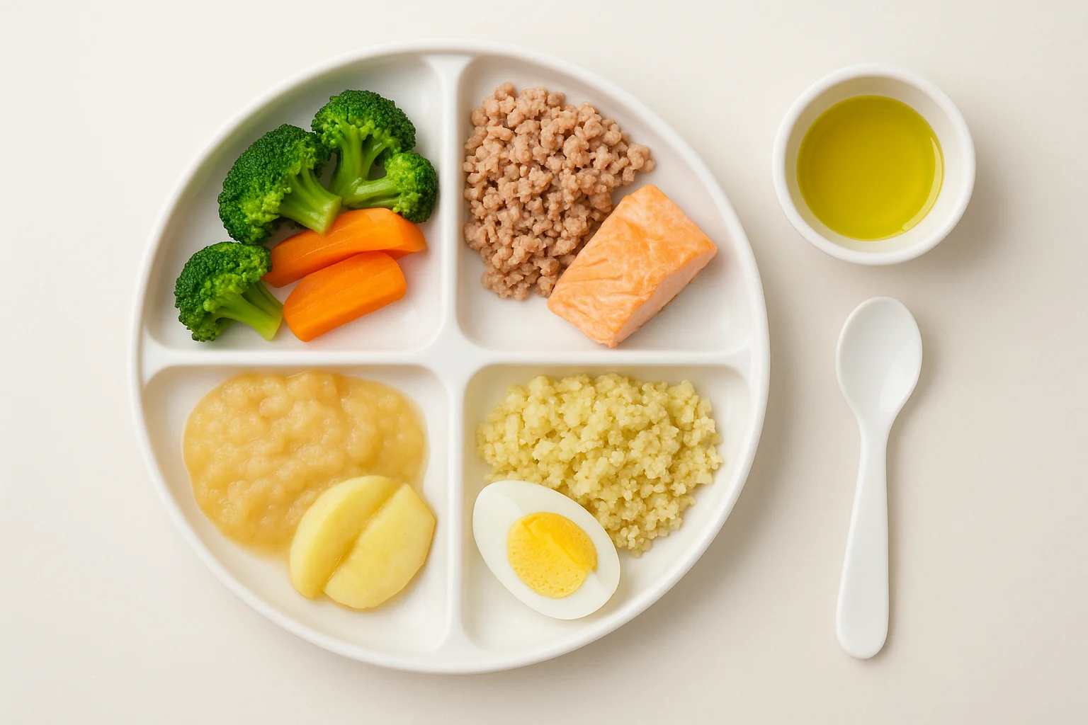 Gotowy plan na 9 tygodni z przykładowymi przepisami. BLW vs tradycyjna metoda, orientacyjne porcje, wskazówki kuchenne